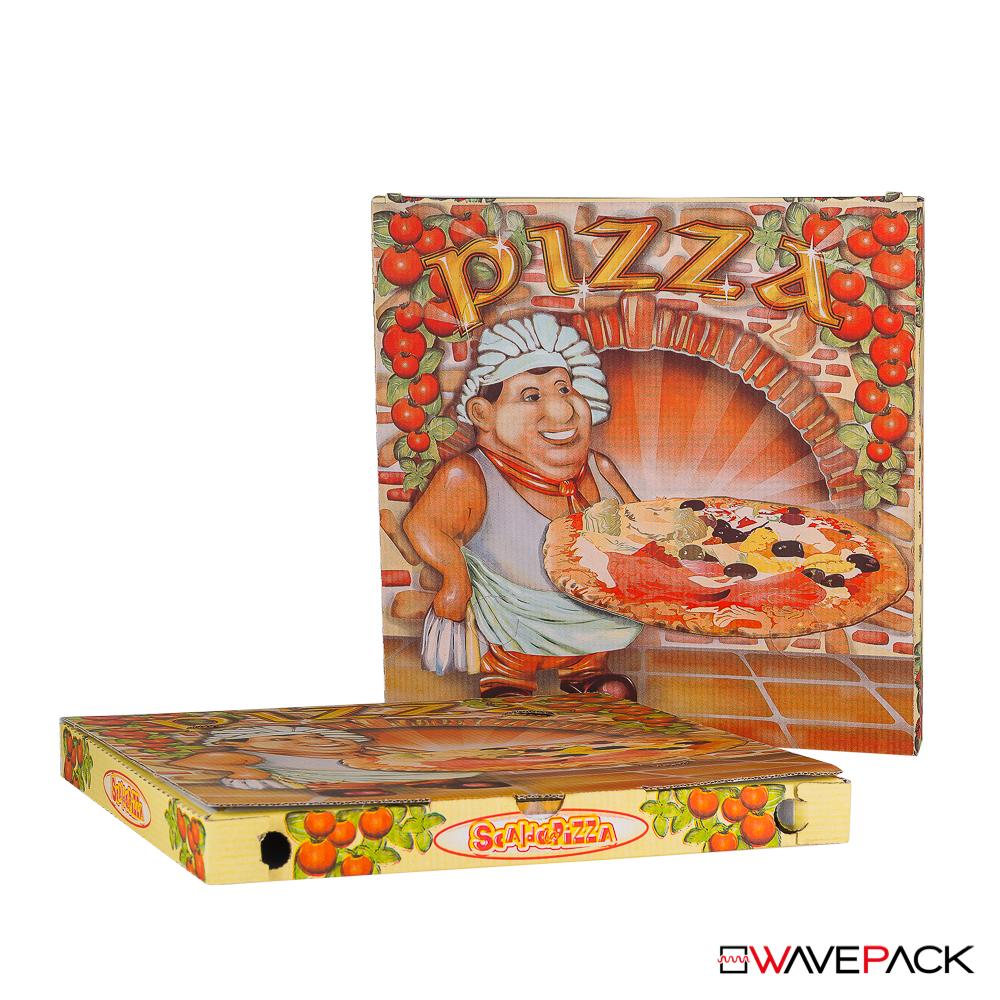 Scatole pizza in cartone modello italiano fondo bianco e stampa a colori